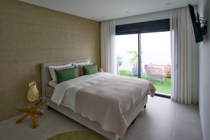 De woning beschikt over 3 ruime slaapkamers en 3 moderne badkamers, ideaal voor gezinnen of vriendengroepen. Elke kamer is stijlvol ingericht en zorgt voor een heerlijke nachtrust na een dag vol zon en ontspanning.